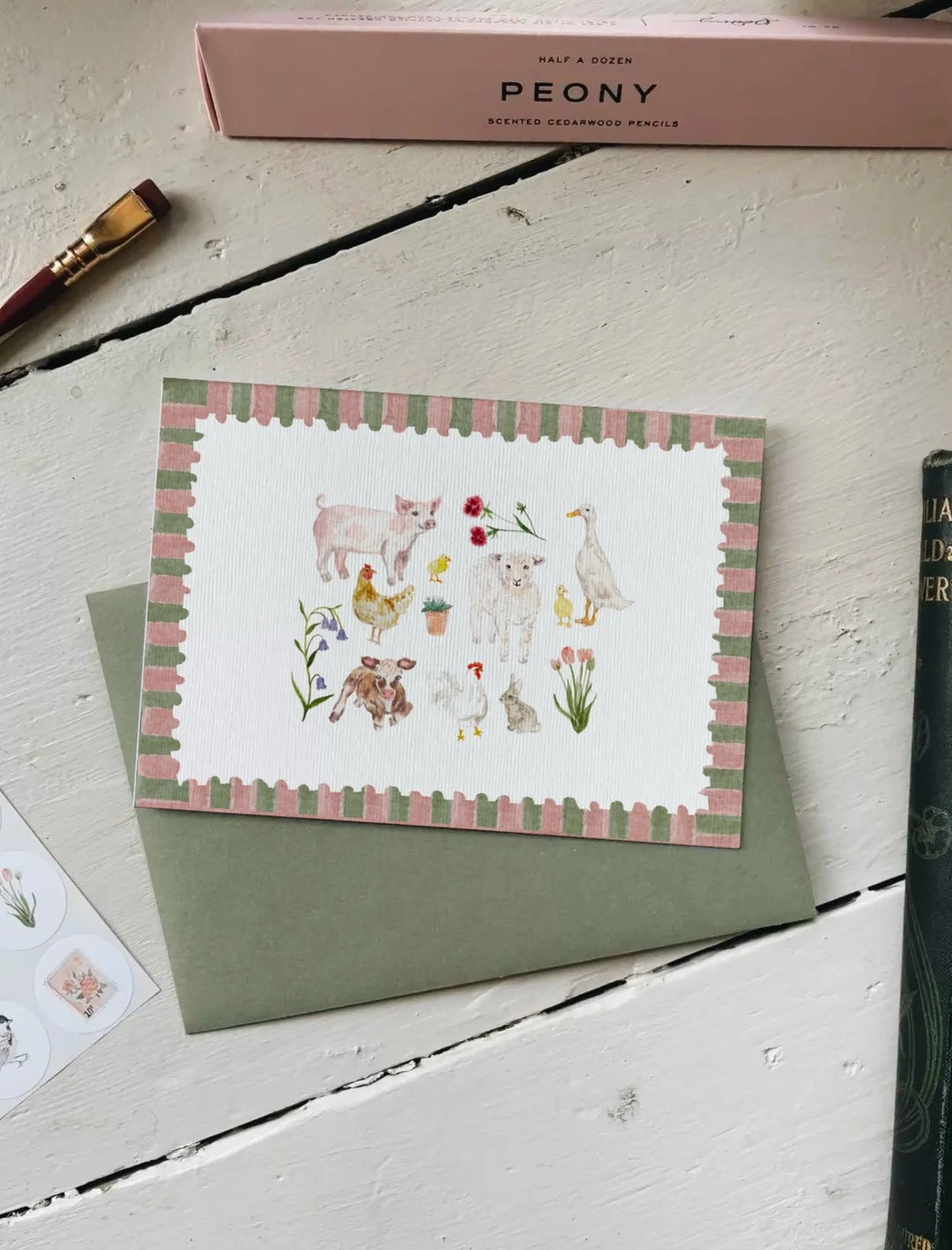 Spring Picnic - Set of 3 hand-wrapped cards with stickers