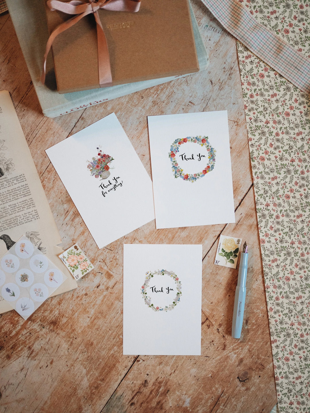 Thank you Florals - Set of 3 hand-wrapped cards with stickers
