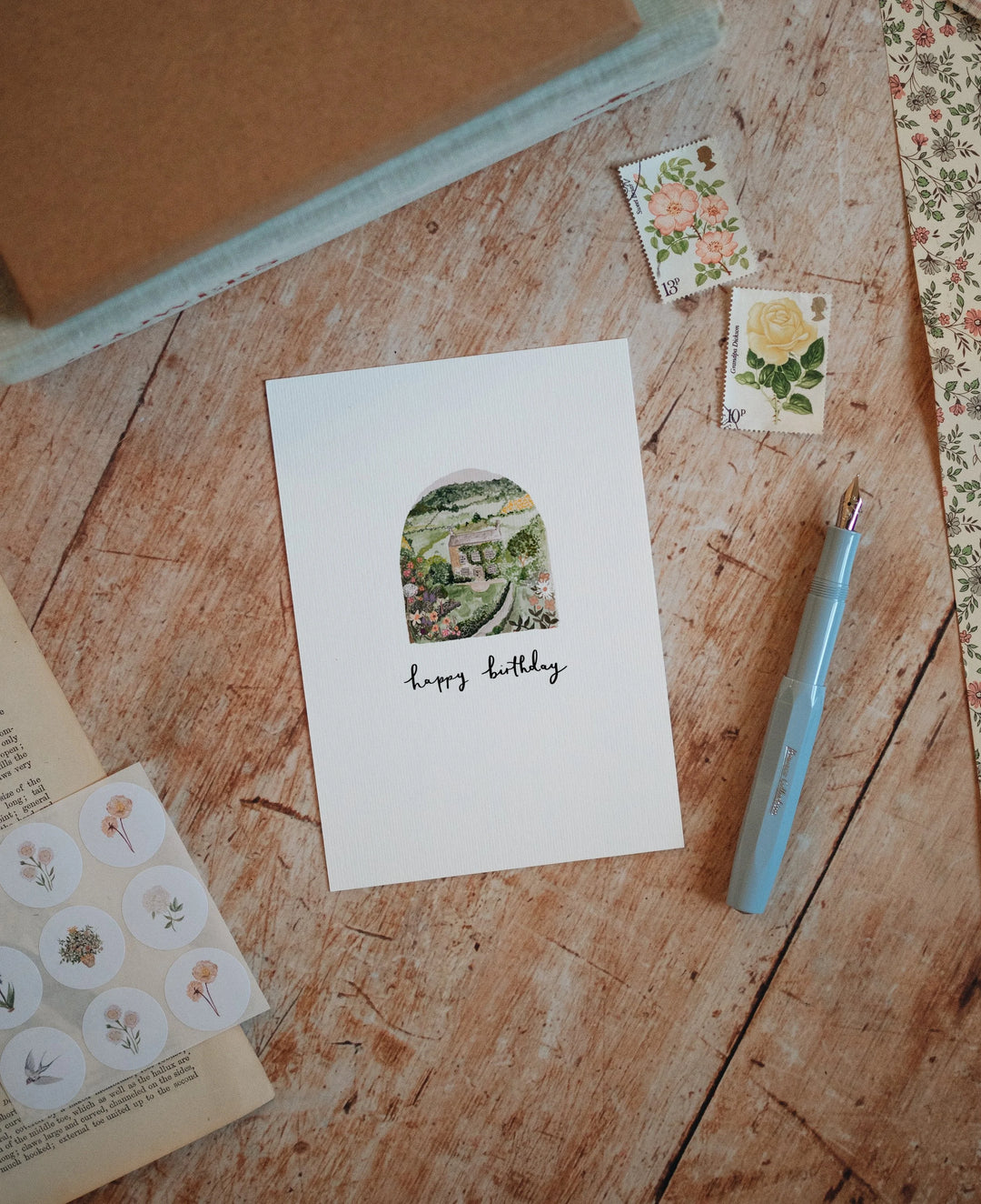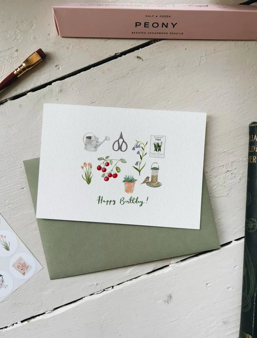 Pottering in the Greenhouse Birthday Card with Green Envelope