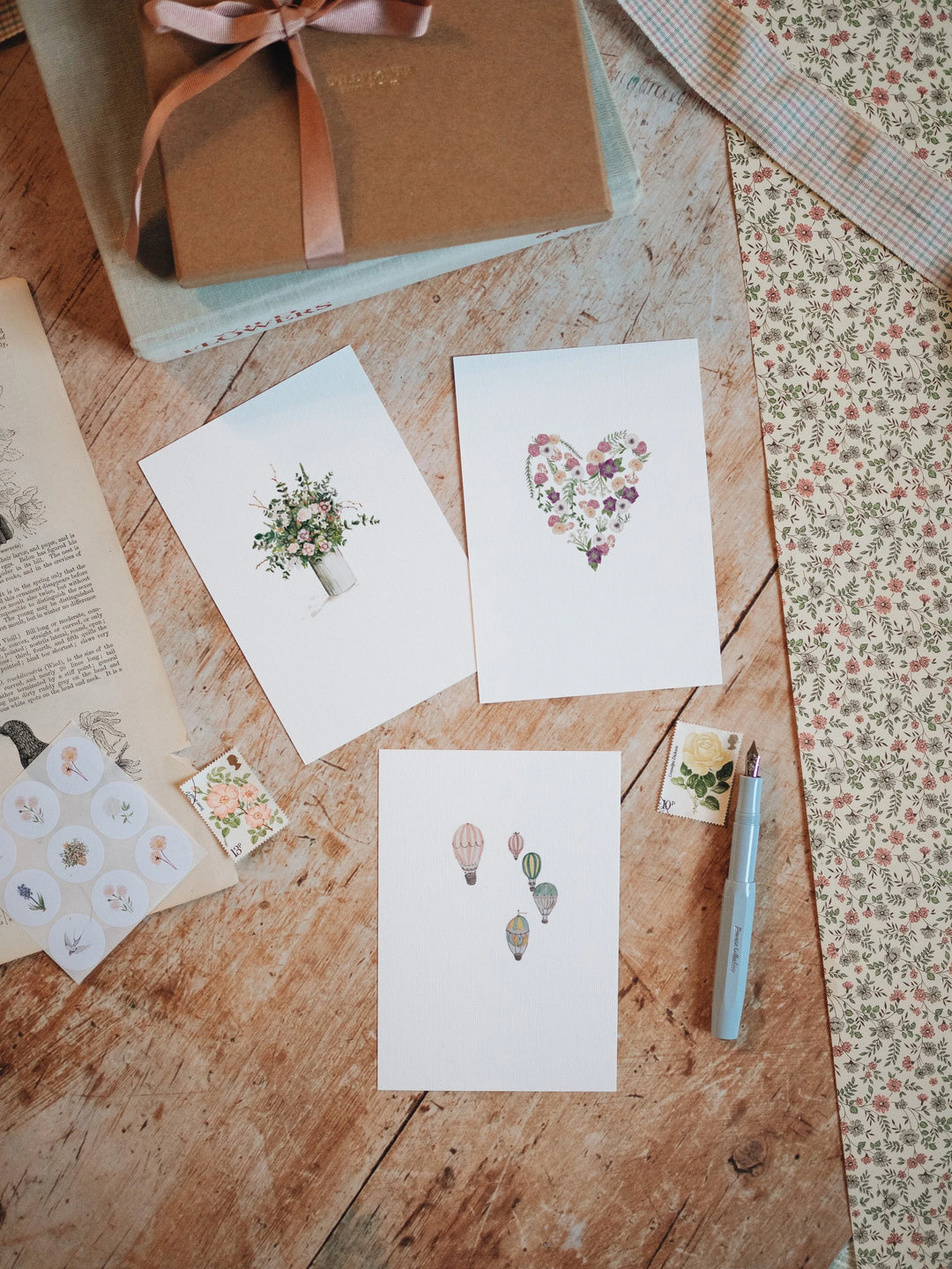 Thank you Florals - Set of 3 hand-wrapped cards with stickers