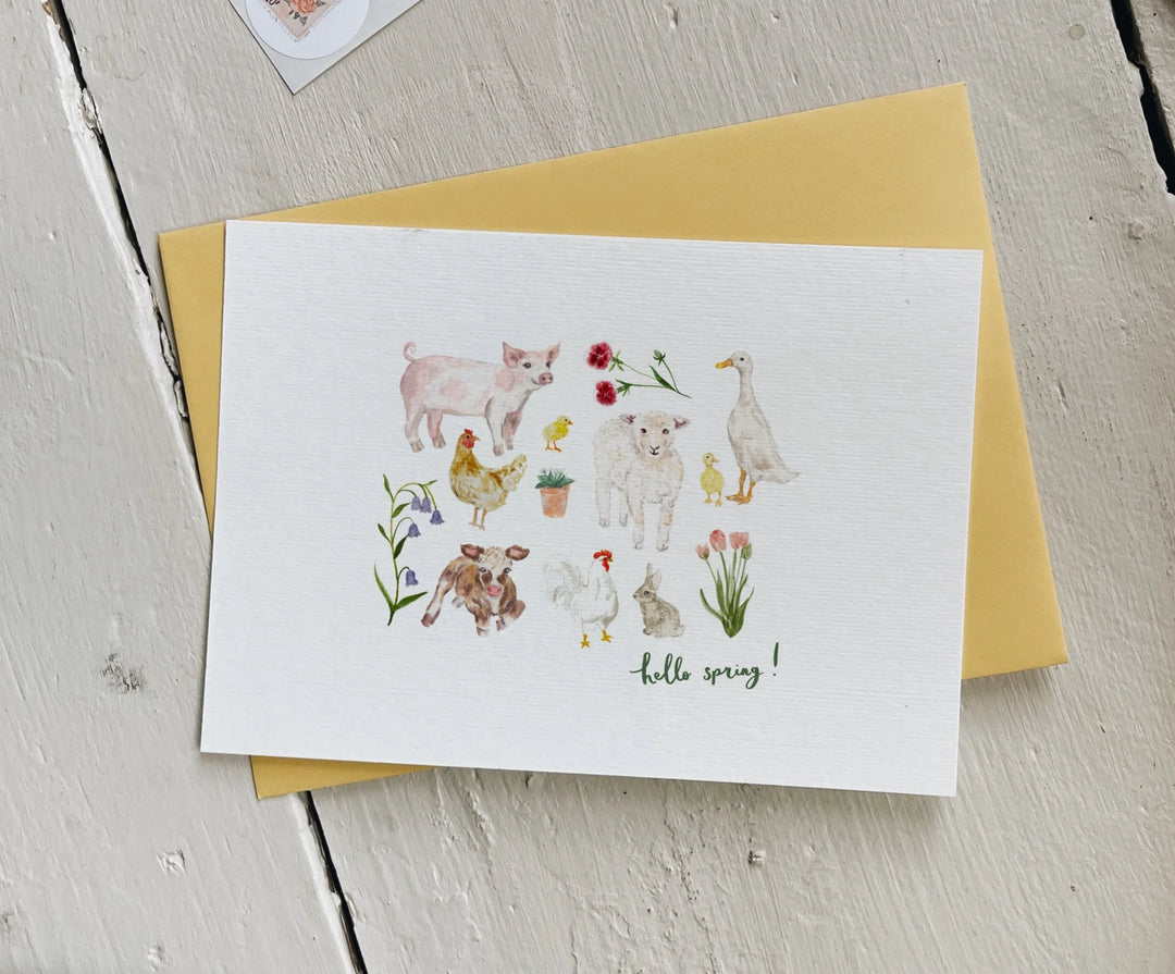 Farmyard Hello Spring Card with Yellow Envelope