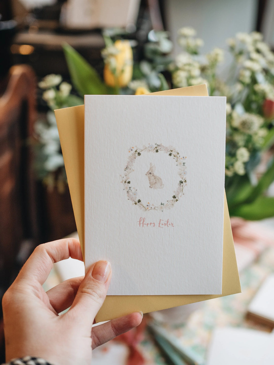 Easter Bunny Blossom Card with Yellow Envelope