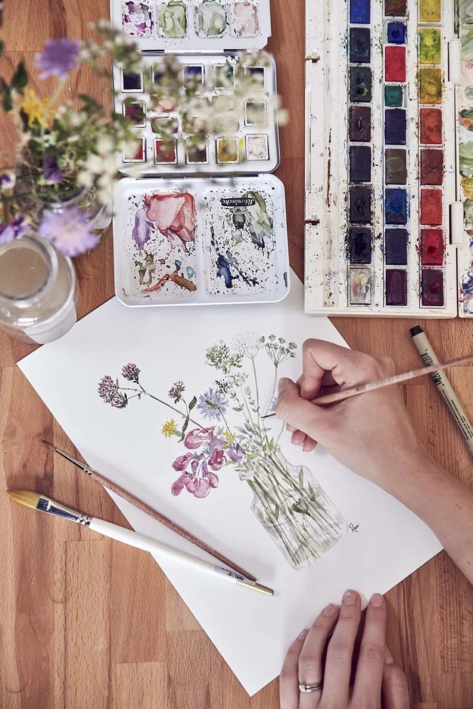 After graduating from Warwick with a BA in Philosophy, Rebecca began her career in law as a solicitor before deciding to pursue a business based around her art and illustration. Rebecca has developed her personal style through years of practice and feedback from collectors. Working in both watercolour and oil, Rebecca takes inspiration from nature - and believes that our connection to it is vital for wellbeing. Many of her paintings are based on the Cotswolds, which she walks in regularly with her family and two dogs - and Cornwall, where she spends as much time as possible! Rebecca is open to private art commissions in watercolour or oil, as well as corporate requests for watercolour illustrations for websites, merchandise or books.