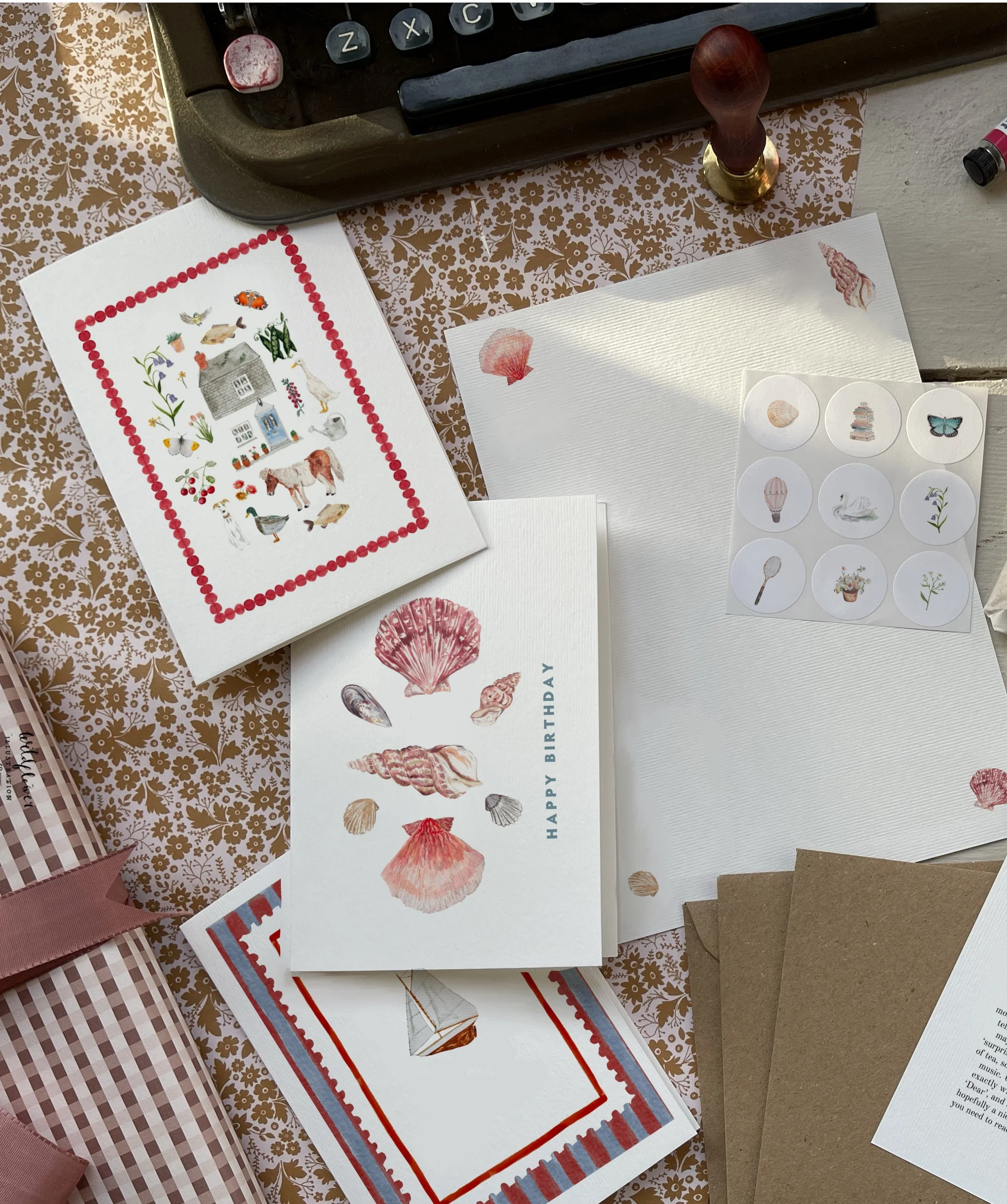 Subscribers receive a monthly curated selection of beautifully illustrated greetings cards and stationery.